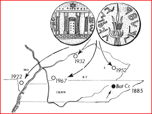"In certain parts of America, however, there are small communities of people who seem, to their immediate neighbors, to be inexplicably different. These tiny populations are not lost, even if they are isolated, but their origins are lost, either because of policy or badly fragmented oral traditions. They may not see themselves as 'white' or 'Indian' or 'black', and it may seem likely that they originated in lands across the sea and reached America within the not-to-distant past. "Along the Virginia-Tennessee border, for example, there still live groups of families in the sparsely settled mountains of Hancock County, Tennessee, who have become known as Melungeons, perhaps because they look to outsiders like a racial mixture, or melange. These rather reclusive farmers have a rich store of folktales but do not know precisely how their forebears came to the area. Some claim Melungeons were in Tennessee long before the local Indians and certainly before the coming of the European settlers. "Described as having reddish-copper skin, straight hair, thin lips, and narrow-shaped faces, these people have impressed observers with their air of caution, their quick intelligence, and their handsome features. . . . Could their ancestry go back to the Ten Lost Tribes? . . . At least one property rights case was won in a Tennessee court when the plaintiff's lawyer argues successfully that she was not black but kin with a 'lost and hounded people, originally Phoenicians'. "Here, then, is a mystery of a lost tribe in reverse, and the puzzling question of its origins continues to intrigue observers. . . . It must be said, however, that certain skeptical writers are more inclined to believe that this small group of Melungeons is really a clan descended from one or two Indians or blacks who intermarried locally. These 'white' Indians, in that case, would be of very recent origin. "We remain in the sphere of unresolved mystery. Can we ever know for certain that so-called Lost Tribes did not actually travel to America and struggle to survive? Perhaps they were massacred, or perhaps they simply succumbed to the unfamiliar hardships of the new environment. Perhaps they made their peace with the new continent by assimilating gradually, and gratefully, so that in the end the only physical record of their having arrived would be their bluish-green eyes of a dark-skinned Indian child, or a pale cast to the skin of an entire tribe." Mysteries of Ancient America p. 41 by Readers Digest To us here at Warpath Ministry we don't think it such a great mystery, the famous Bat Creek Inscription was unearthed in this very area, inscribed in ancient Hebrew characters. Some interpret it to say "Only for Jehu", others read "Only for Yahudim [Jews]". Dr. Robert Stieglitz of New York reads it as "A comet for the Hebrews", with reference to Halley's Comet, which "hung over Jerusalem like a flaming sword" in the year 69 A.D.., during the First Revolt, begun in 68 under Nero.